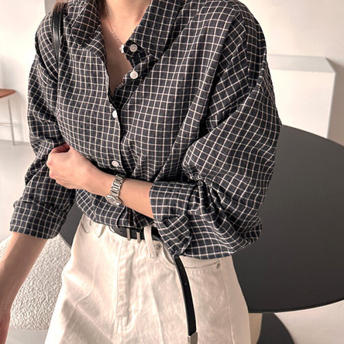 고품질 줄무늬 체크셔츠 가을 루즈 신상 남자 긴팔 남녀공용 (WFJRTA0)