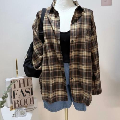 |CCH4286|여성 체크 패턴 오버사이즈 긴팔 캐주얼 블라우스
