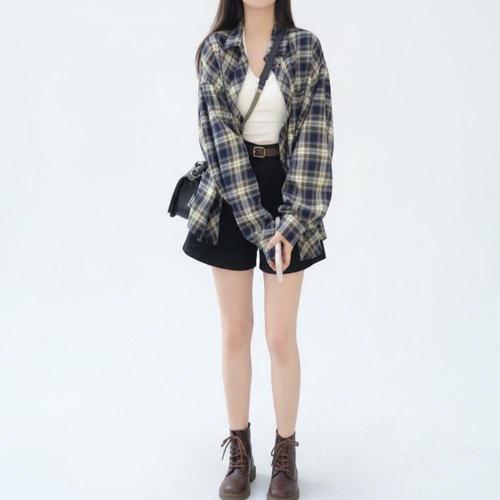 [신상오픈런]여성용 봄가을 오버사이즈 체크 패턴 코튼 셔츠