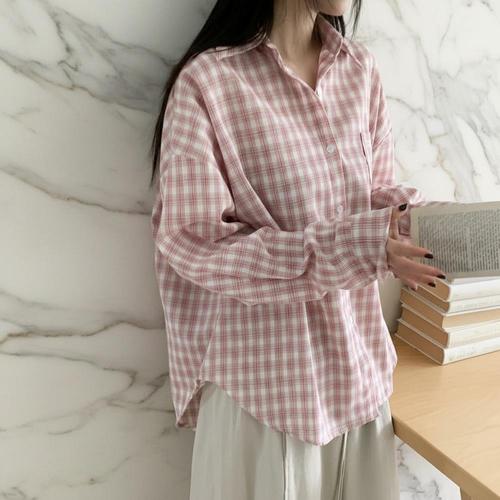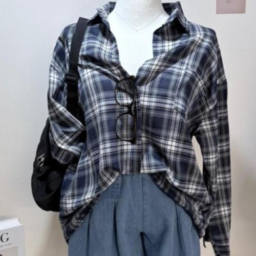 |CCH4267|여성용 봄가을 오버사이즈 체크 패턴 캐주얼 셔츠