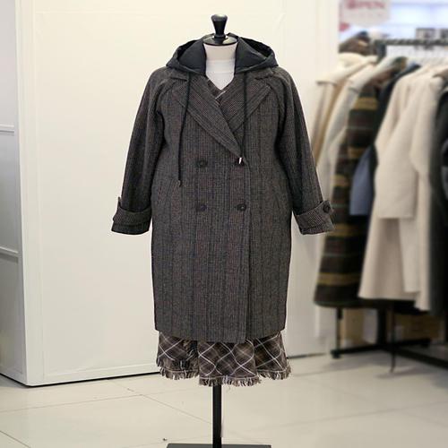 [엘리시아][66-120] 체크 포근 후드 울 코트