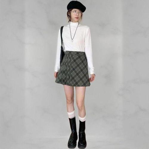 옷자락 / 여성 겨울 체크 스커트 캐주얼 미디 치마