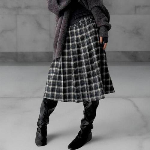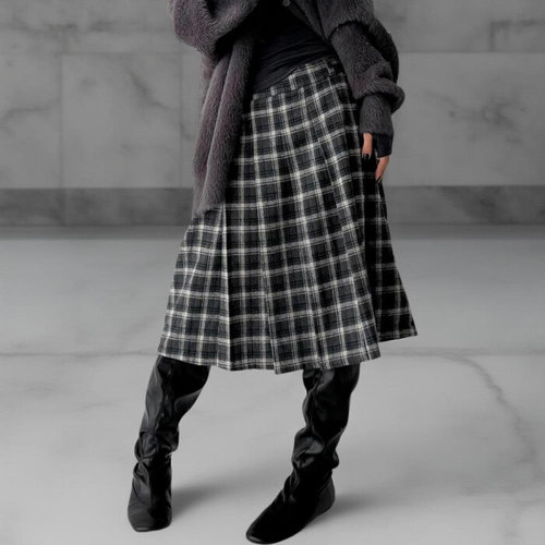 알리팡 여성 롱 스커트 A라인 결혼식 하객 치마 캐쥬얼 스커트 체크무늬 모직 하이웨이스트