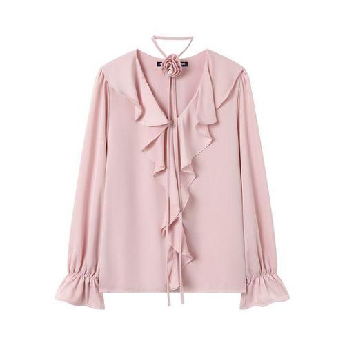 [미니멈에브리데이][미니멈 에브리데이]러플 플라워 초커 타이 세트 블라우스 (EB4BA002D)