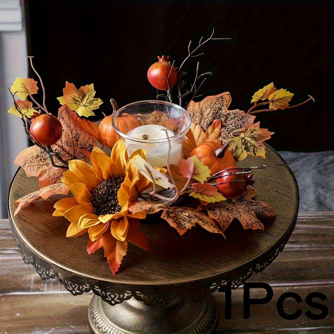 TEMU 1개 예술적이고 우아한 빈티지 호박 화환 - 할로윈, 크리스마스, 데이, 추수감사절에 적합한 플라스틱 꽃다발 테이블탑 장식품 | 전기가 필요하지 않은 캔들홀더와 향초대용자