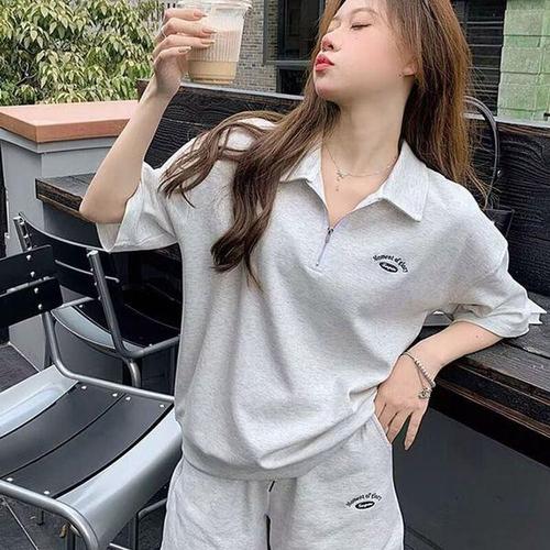 [에이치플러스몰]홈웨어 트레이닝복세트 스타일리시한 반집업 반팔세트