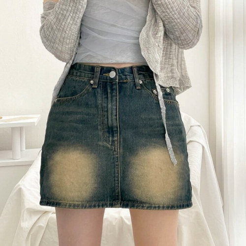 입꼬 / Y2K 옐로우하이틴 워싱 데님 미니스커트2color