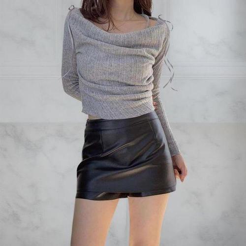[다잇템]여성 쁘띠 독특 속바지 에이라인 레더 치마