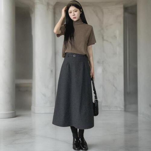 [다잇템]여성 울 세트 백밴딩 혁대 에이라인 롱치마