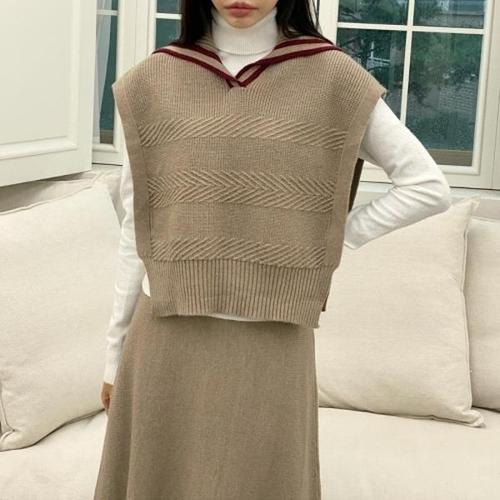 [다잇템][다잇템] 여자 치마 세일러카라 빗살 스웨터 FW 조끼 고무줄 세트_18668016_588872