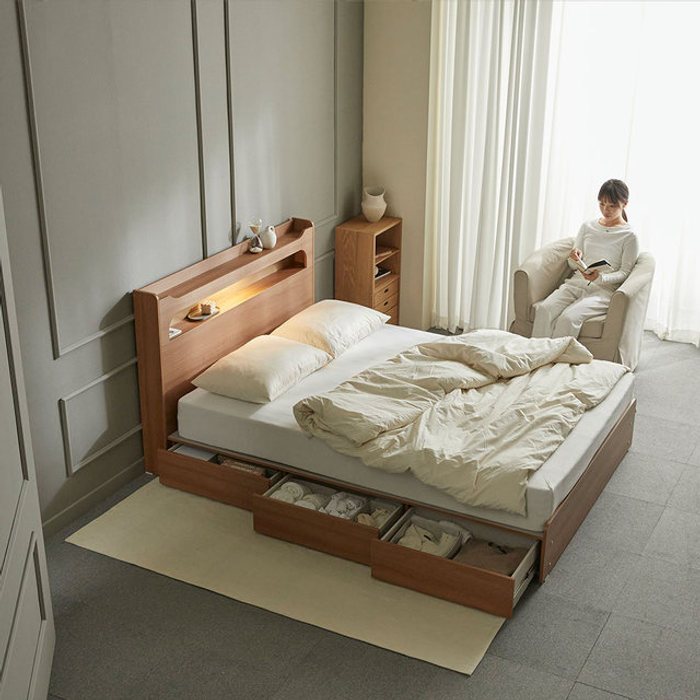 규수방 E0 친환경 고급형 통서랍 LED 4단 서랍 침대 프레임 싱글/슈퍼싱글/더블/퀸