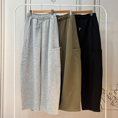 [옷자락] 남녀공용 와이드핏 커브드 카고바지 극세사