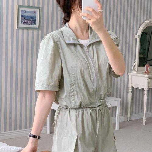 [옷자락]여자 블록코어 스트링 집업점퍼 여름카고 반바지 세트