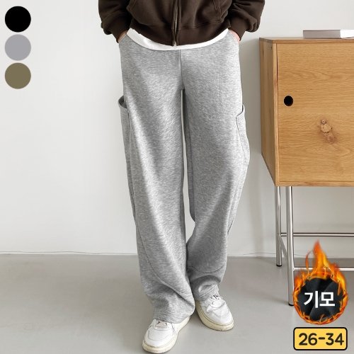 가비진 남성용 따뜻 안감 기모 커브드 와이드 카고 포켓 트레이닝 팬츠 바지 고밀도기모 남녀공용 빅사이즈