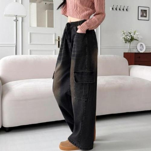 여성 뒷밴딩 카고 루즈핏 와이드 데님 포켓 청바지 NTT-WPT-20306-진청