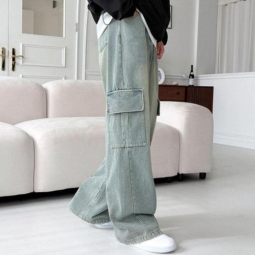 [보슈아][sado]남성 청바지 머드워싱 밴딩 카고 데님 와이드 바지 사계절 SF1048M