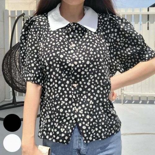 [신상오픈런]여성용 꽃무늬 레이스 포켓 대형 카라 반팔 면 블라우스 (39101982)