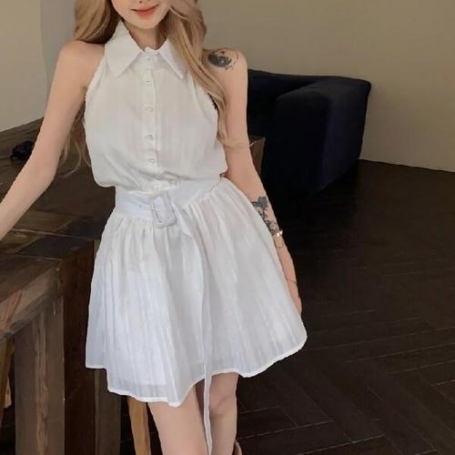 [디자이너몰]여성 썸머 데일리 미니 카라 홀터넥 원피스