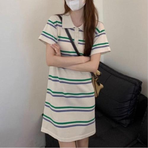 카라 스트라이프 미니 셔츠 원피스 여름코디