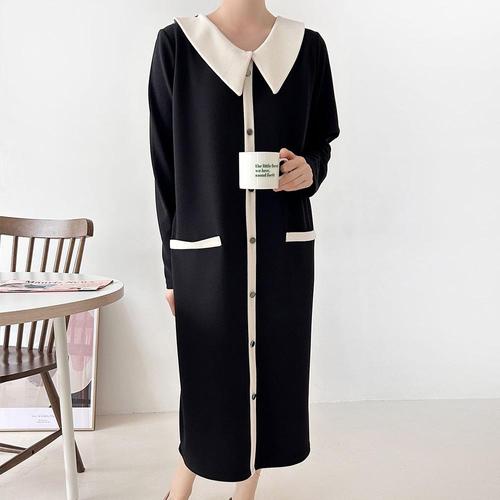 [신상오픈런]|KSO5A02|여성 배색 대카라 버튼 롱원피스 빅사이즈 봄 하객룩