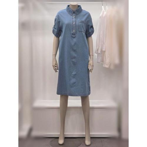 [프렐린]RJO262090 카라넥 반팔 데님 원피스