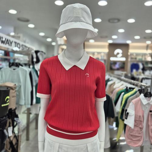 [챌린저]여성 믹스 조직 배색 카라 반팔 니트 풀오버 레드_CHE2WKT2623RD_IC