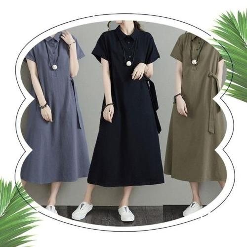 [엄지척]여성 여름 반팔 카라 단추 셔츠원피스 린넨원피스 2색_19911870_667501