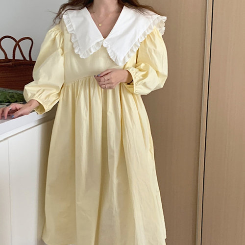 플레어스커트 카라 면원피스 무지원피스 URK-