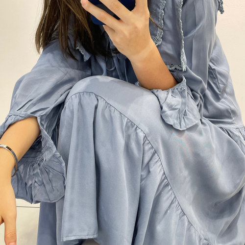 슈팅스타 / 부드러운 면 긴팔 빅카라 리본 셔링 롱 원피스