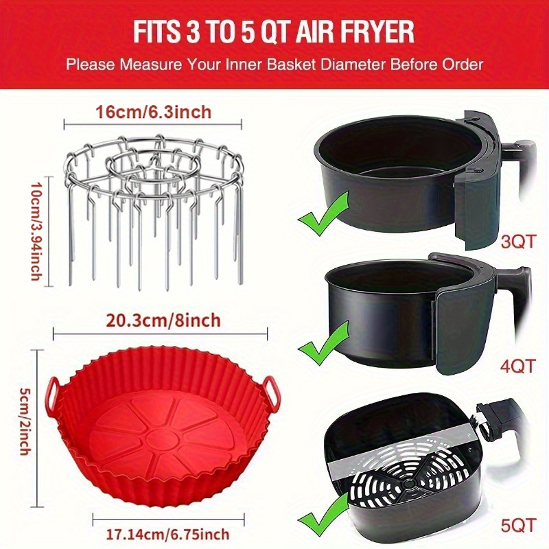 TEMU 2개 에어 프라이어 세트 (실리콘 라이너 포함 + 스테인리스 스틸 수직 그릴) - 쉽게 청소할 수 있는 재사용 가능한 에어 프라이어 실리콘 라운드 매트 - 고기 꼬치, 닭다리, 날개, 허벅지에 적합 - 고온 저항, 더 균일한 가열, 필요 없음|에어프라이어