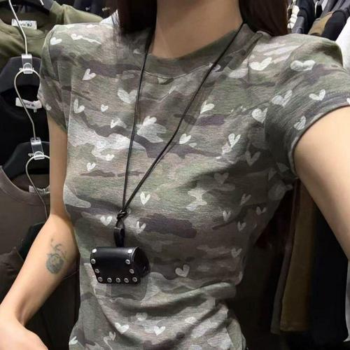 [다잇템]여자 하트카모 클래식 귀여운 그런지 반팔티