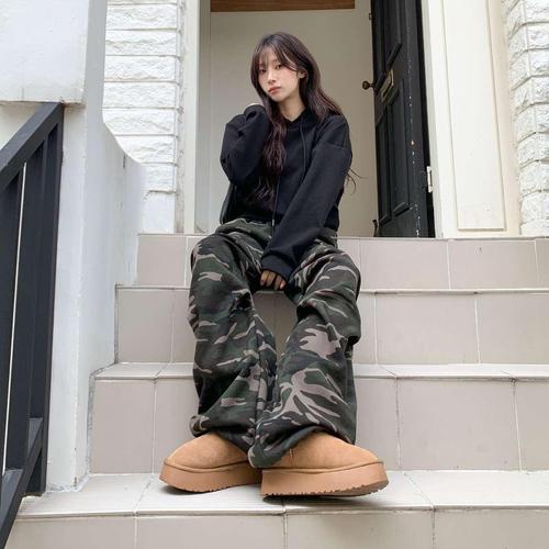 [옷자락] 여성 카모플라쥬 허리밴딩 조거 와이드 팬츠
