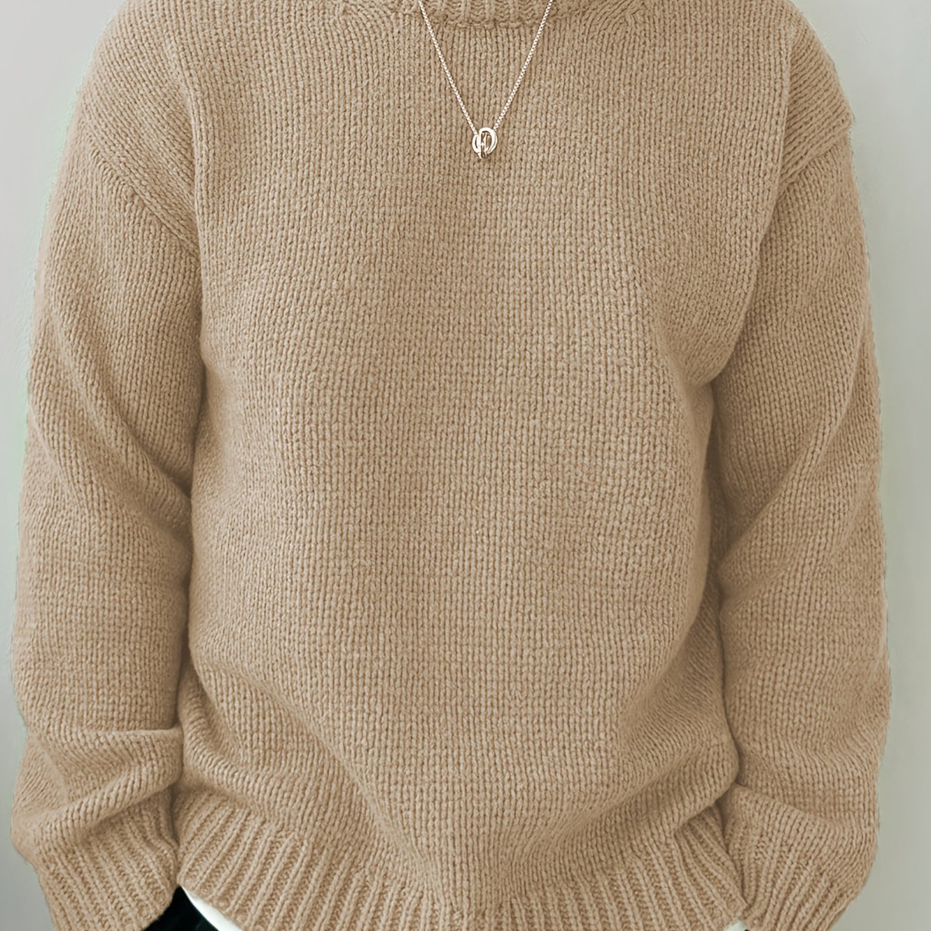 TEMU 남성용 라운드넥 드롭숄더 솔리드 컬러 스웨터, 가을 겨울 캐주얼 루즈핏 니트 풀오버