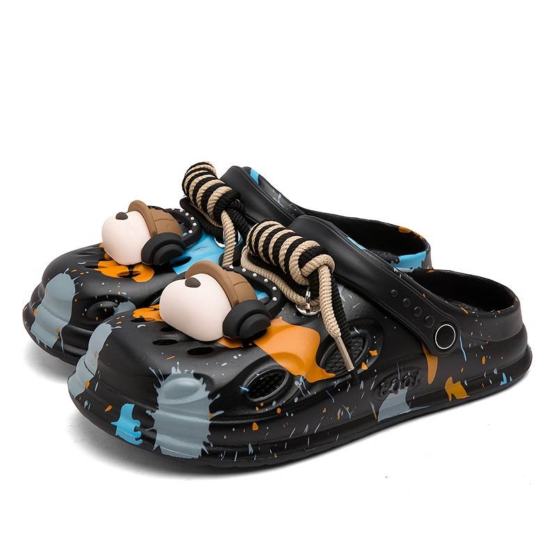 TEMU 3가지 색상, 패션 여성용 만화 리본 매직 테이프 클로그 - 가벼운 여름 해변, 두꺼운 밑창 부드러운 바닥 야외 슬리퍼 커플 캐주얼 해변 샌들 통기성 홈 슬리퍼, 부드러운 둥근 앞코 정원 슬리퍼 야외 해변 남성용