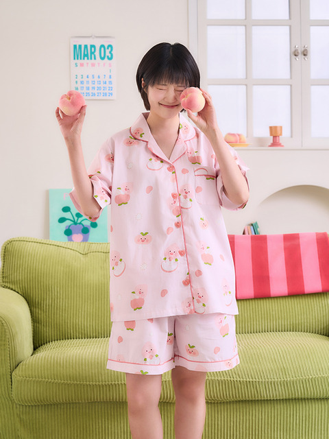 카카오프렌즈 춘식이 래글런 반팔 잠옷 세트 반소매 반바지 파자마 실내복 홈웨어