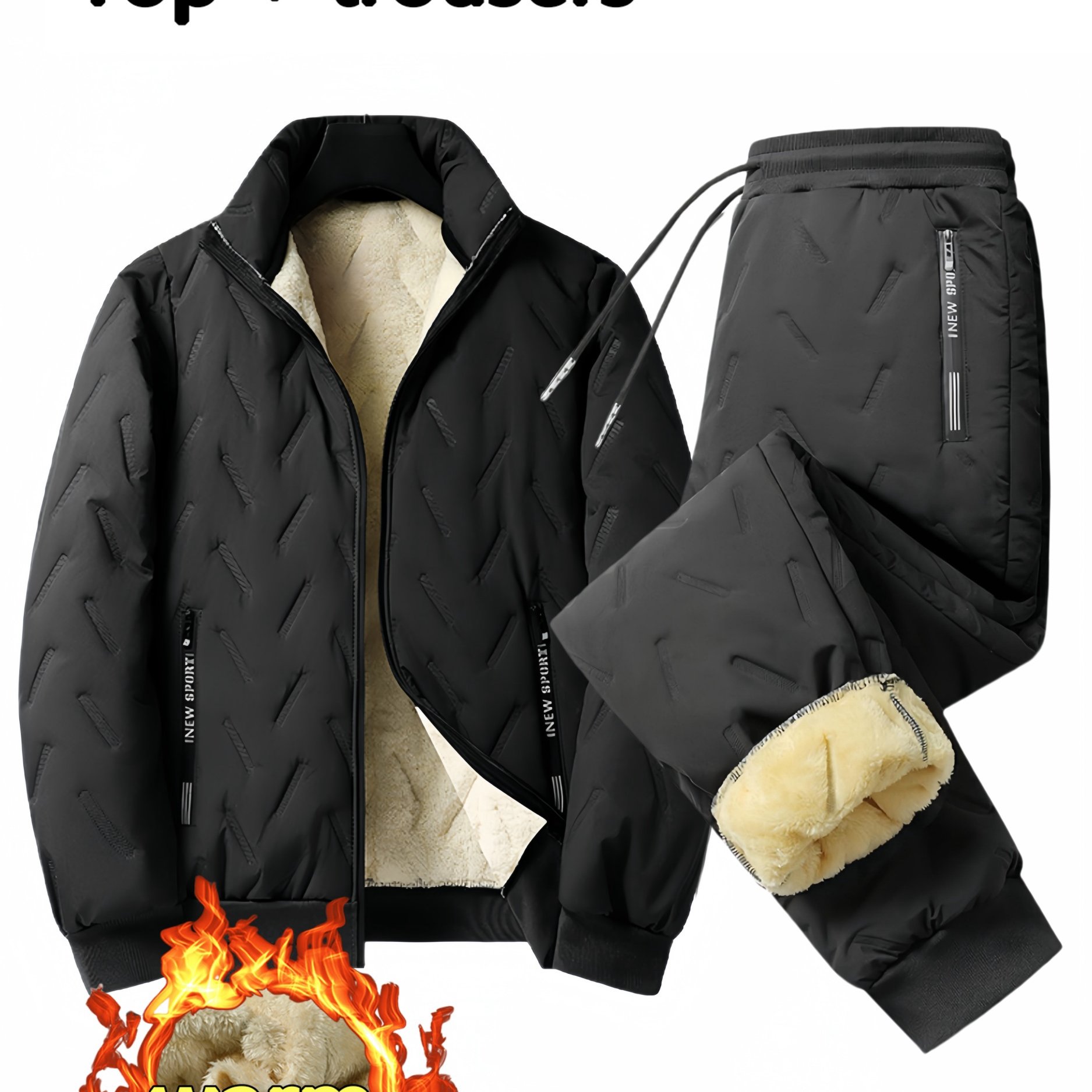 TEMU 남성용 겨울 야외 스포츠 슈트 - 보온 스키 재킷 & 바지 세트, 신축성 없는 원단, 긴 소매, 단색, 만다린 칼라, 지퍼 클로저, 포켓, 하이킹 및 캐주얼 착용에 적합, 가을/겨울 컬렉션, 겨울 스포츠 기어 | 스포티한 겨울 의상 | 지퍼 포켓, 두꺼운