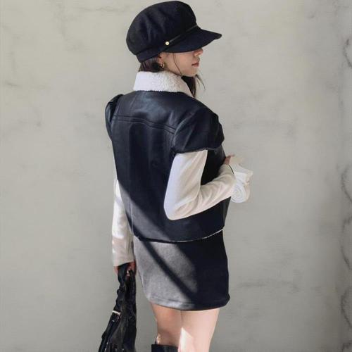 [옷자락]여성 힙무드 덤블 카파넥 무스탕 조끼 베스트