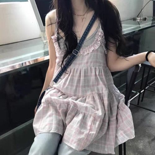 입꼬 / 캔디 체크 뷔스티에 캉캉 프릴 나시 원피스2color