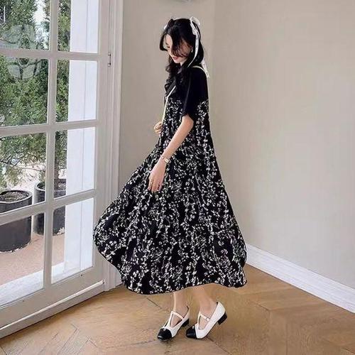 여성 여름 시폰 캉캉 스커트 라운드 반팔 롱 원피스 바캉스룩