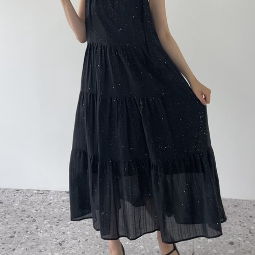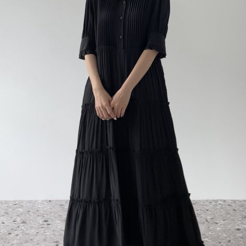 샵앤) 여성 카라 단추 4단 캉캉 셔링 롱원피스 ARA-WDR-4949-블랙