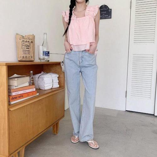 [신상오픈런]여성 프릴 캉캉 스퀘어넥 나시 블라우스