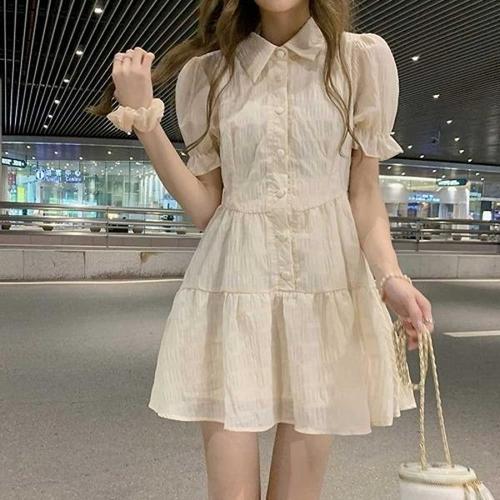 [엄지척]카라 캉캉 원피스 어깨 셔링 퍼프소매 A라인_19913439_667501