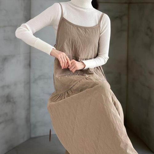 [옷자락] 여성 겨울 누빔 다이아 퀼팅 캉캉 스트랩 롱드레스