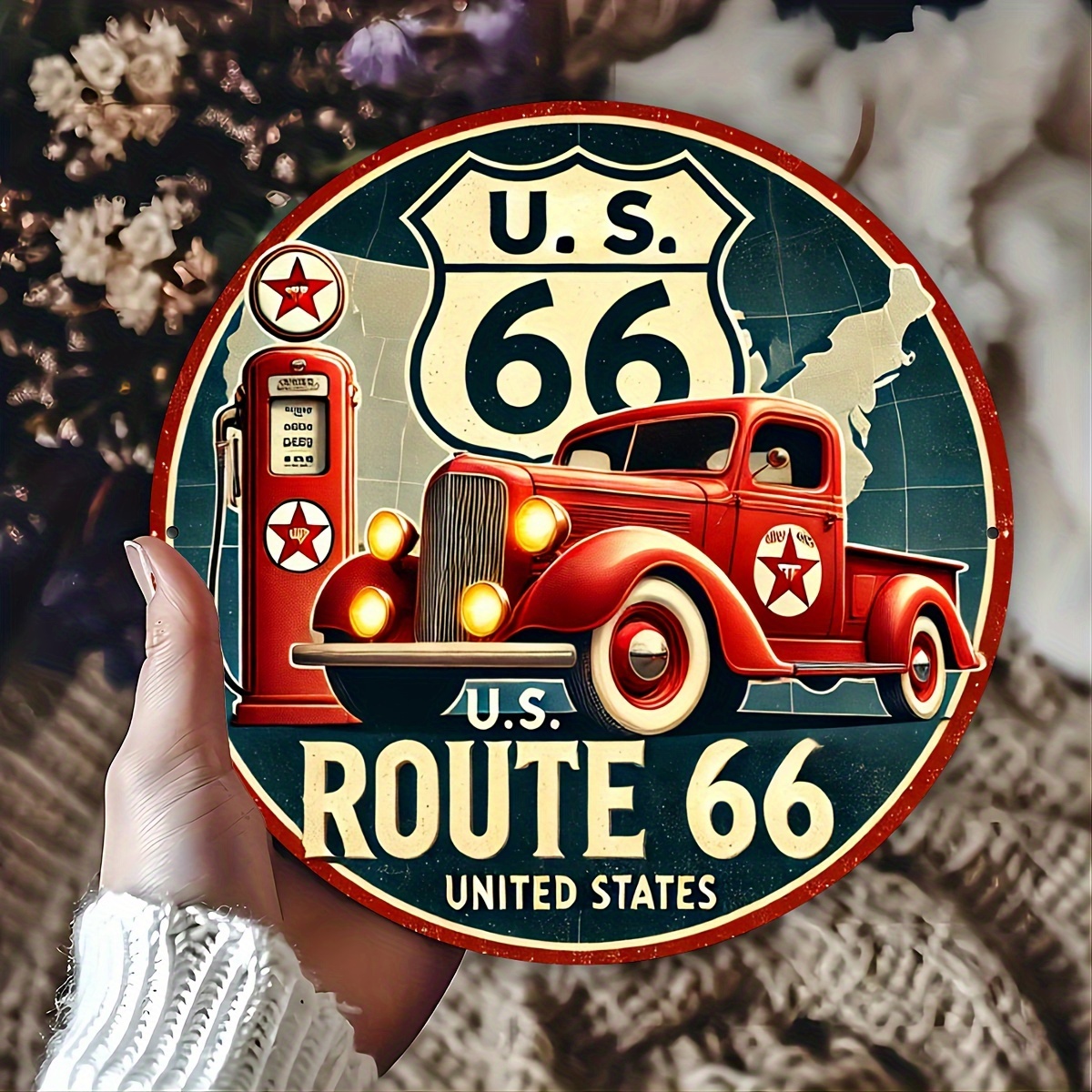 TEMU 빈티지 66번 국도 금속 주석 간판 - 1개 8x8 인치 알루미늄 벽 예술 남성 동굴, 차고 및 주유소 장식용 - 원형 내구성, 방수, 퇴색 및 녹 방지 실내/실외 장식용 가정, 사무실, 바, 카페
