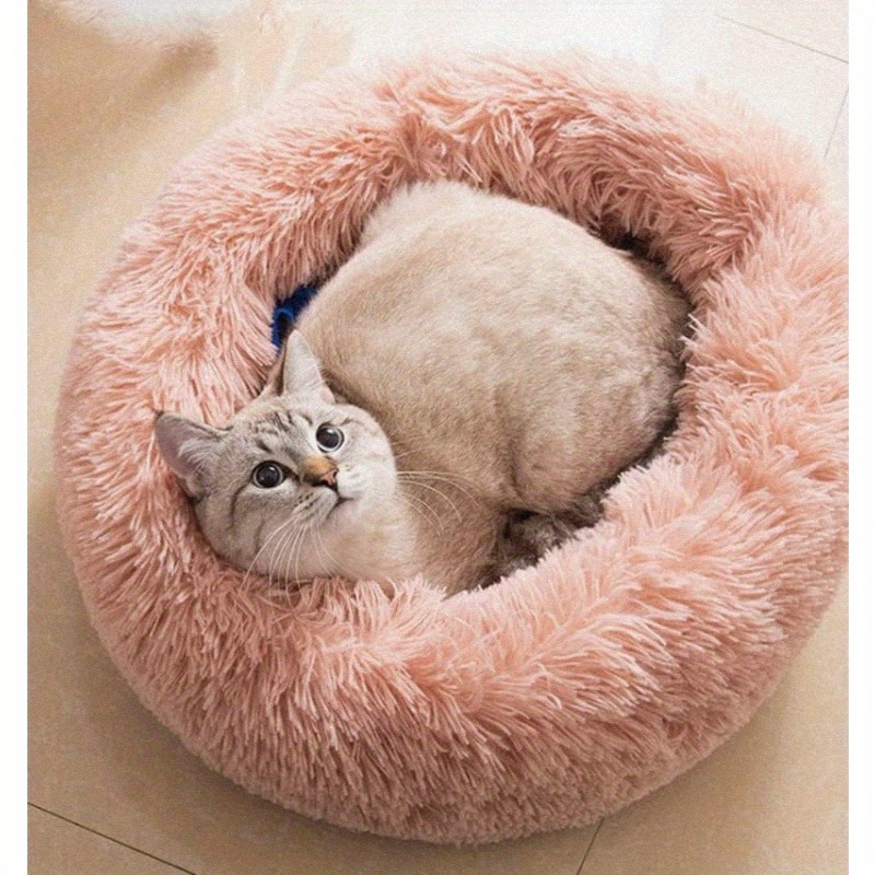 TEMU 세탁 가능한 플러시 고양이 침대 - 실내 고양이 & 소형견용, 두꺼운 압력 완화 침대, 원형 인조 퍼 펫 매트, 확장 가능한 베이스, 관절에 적합한 기계 세탁 가능한 포근한 침대, 고양이/개용, 중형 19.69×19.69인치