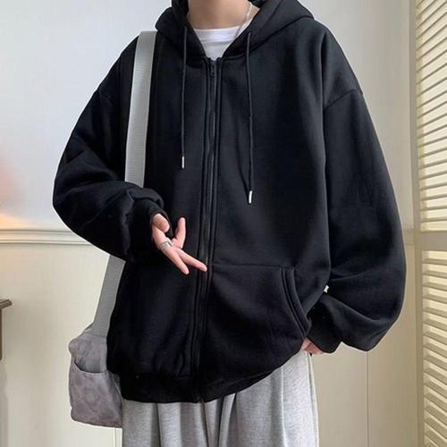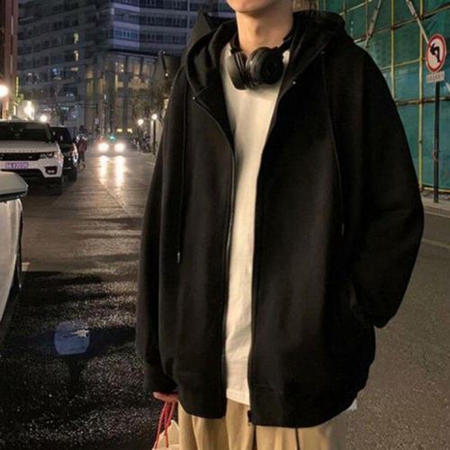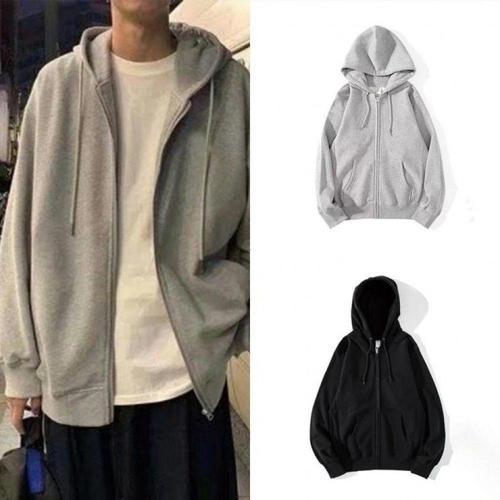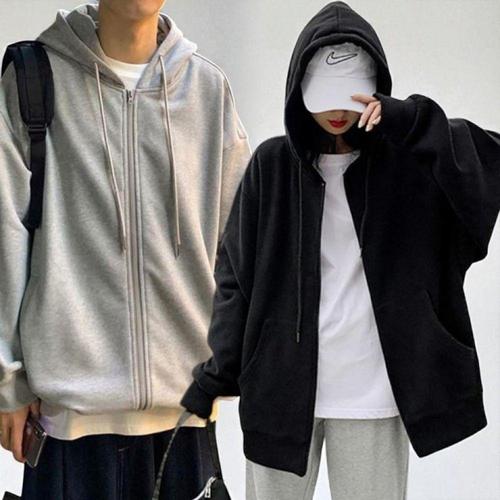 1+1 남자 심플 긴팔 후드티 맨투맨 오버핏 무지 후드집업 빅사이즈 트레이닝복 기모 두꺼운 데일리 캐주얼 상의 루즈핏 학생 아우터 상의