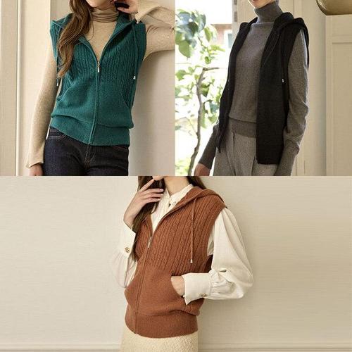 여성 소마 캐주얼 레이어드 후드스트링 집업 니트 조끼 DGB-WVS-2682-연베이지