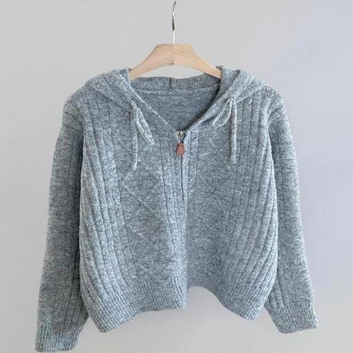 여성 캐주얼 꽈배기 후드 스트링 루즈핏 집업 가디건