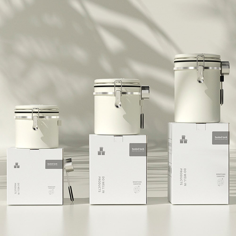 고원 스텐 커피 원두 밀폐용기 1.2L 베이지 보관통 캐니스터