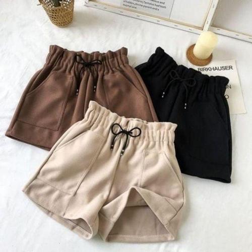 [에이치플러스몰]세미플레어 모직 하프바지 고무줄 숏핏 바지 여자 커플룩클래식